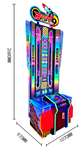 Rocket Rush is a simple but highly amusing rocket-themed ticket redemption game. Player controls when the “rocket” stops by pushing the red button,where ever it stops, that’s how many tickets you win. All players have to do is try to win bonus by using their skill,not too slow or too fast.There are always different values available, with it changing dynamically thanks to the bright RGB LED display.